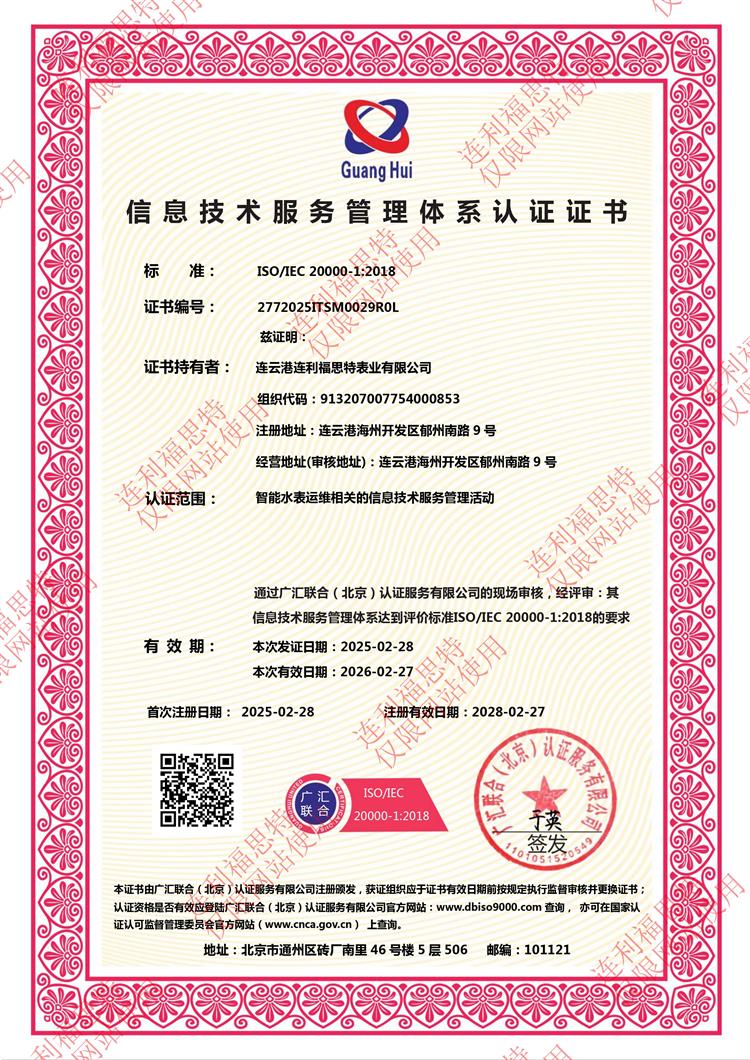 信息技術(shù)服務(wù)管理體系認證證書